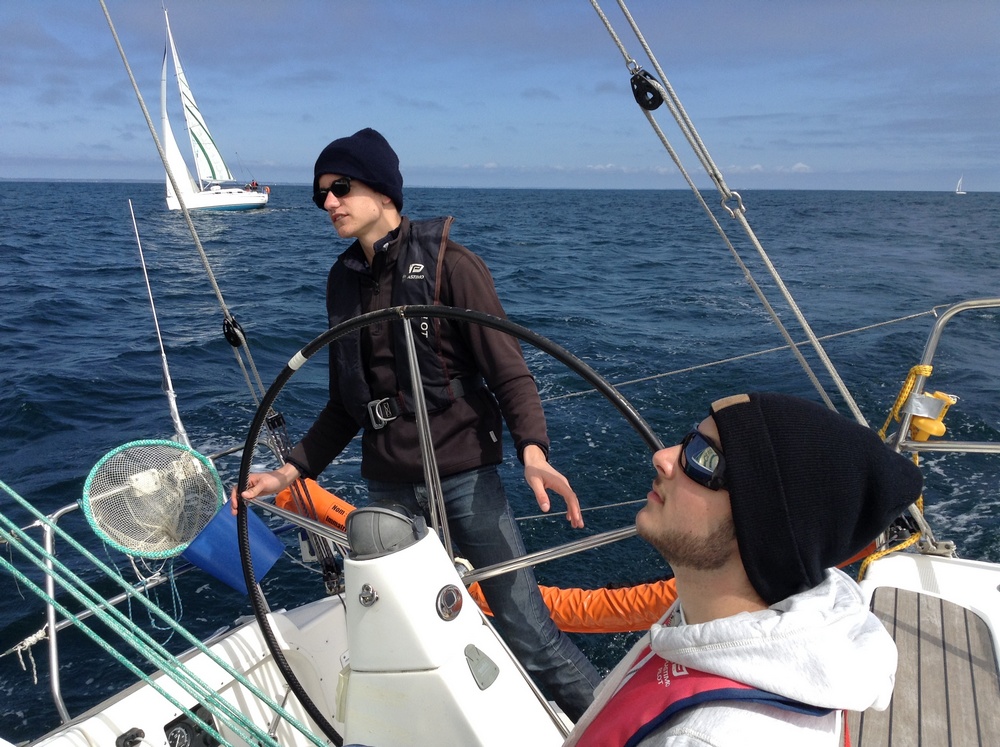 22.04.2015 3 Wochen schönes Wetter im April in der Bretagne Charles und Lucas auf dem Jugendlichen Törn. Die Crew der Europe gibt sein Bestes, um uns zu überholen !